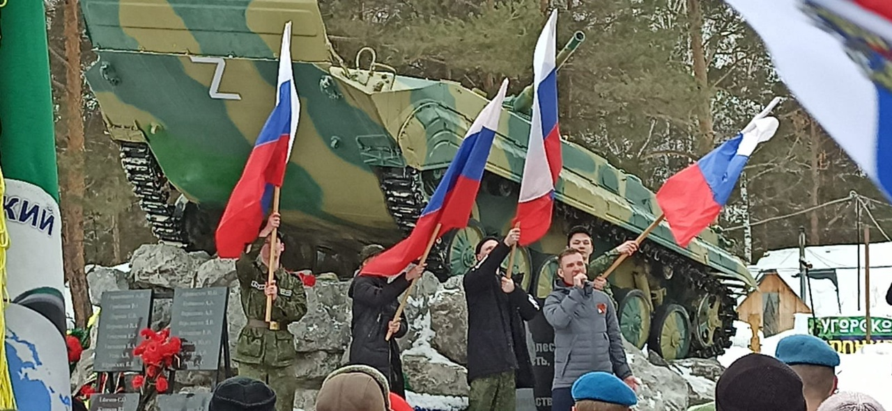 Сегодня в Каменске-Уральском на Аллее Славы состоялся митинг в поддержку спецоперации российских вооруженных сил на Украине. Мероприятие прошло под лозунгами «Za Мир», «Za Россию» и «Za президента». Преподаватели и студенты радиотехникума поддержали акцию, выйдя на Аллею Славы с плакатами и российскими флагами.