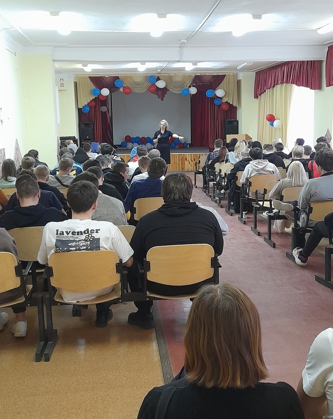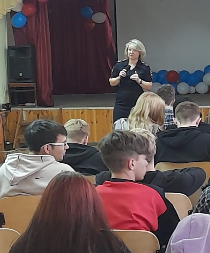 26 октября 2022 года для первокурсников техникума состоялся «Единый день профилактики» для несовершеннолетних. Инспектор ПДН Екатерина Константиновной Корниенко рассказала несовершеннолетним об административной и уголовной ответственности за правонарушения и преступления. Темы, которые обсуждались с ребятами, очень важны – это «Профилактика правонарушений и преступлений», «Административная и уголовная ответственность несовершеннолетних», «Преступления против половой неприкосновенности». Екатерина Константиновна настоятельно рекомендовала соблюдать правила поведения на улице, в общественных местах, местах массового отдыха, не забывать о соблюдении комендантского часа , воздержаться от посещения районов, заявленных как места проведения несанкционированных публичных мероприятий, предостеречь от необдуманных поступков своих родственников, знакомых, несовершеннолетних детей.