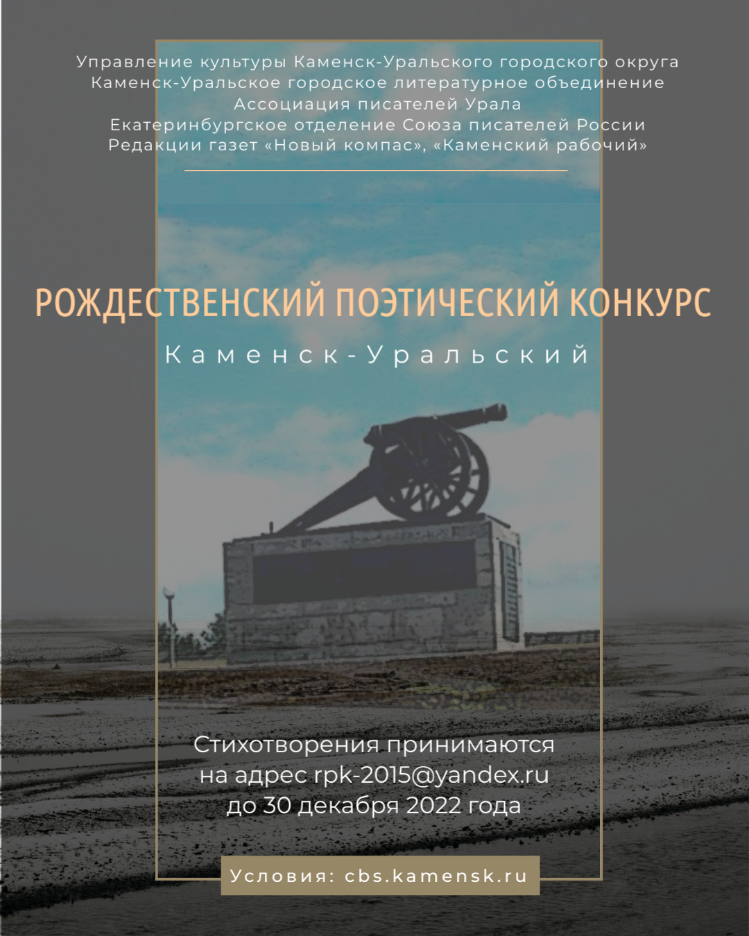 Организаторами Рождественского поэтического конкурса являются управление культуры Каменск-Уральского городского округа, Каменск-Уральское городское литературное объединение, Ассоциация писателей Урала, Екатеринбургское отделение Союза писателей России, редакции газет «Новый компас» и «Каменский рабочий».