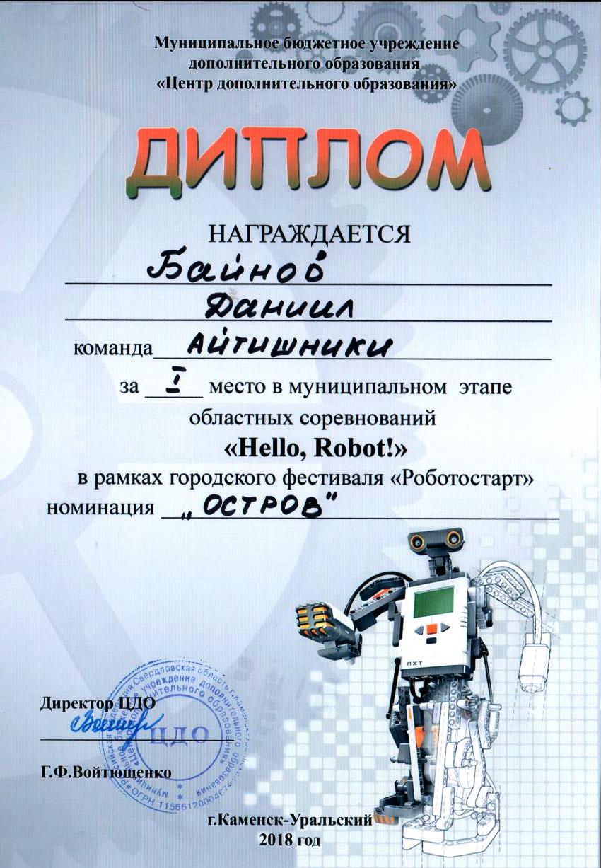 Диплом Байнов областные соревнования Hellp Robot