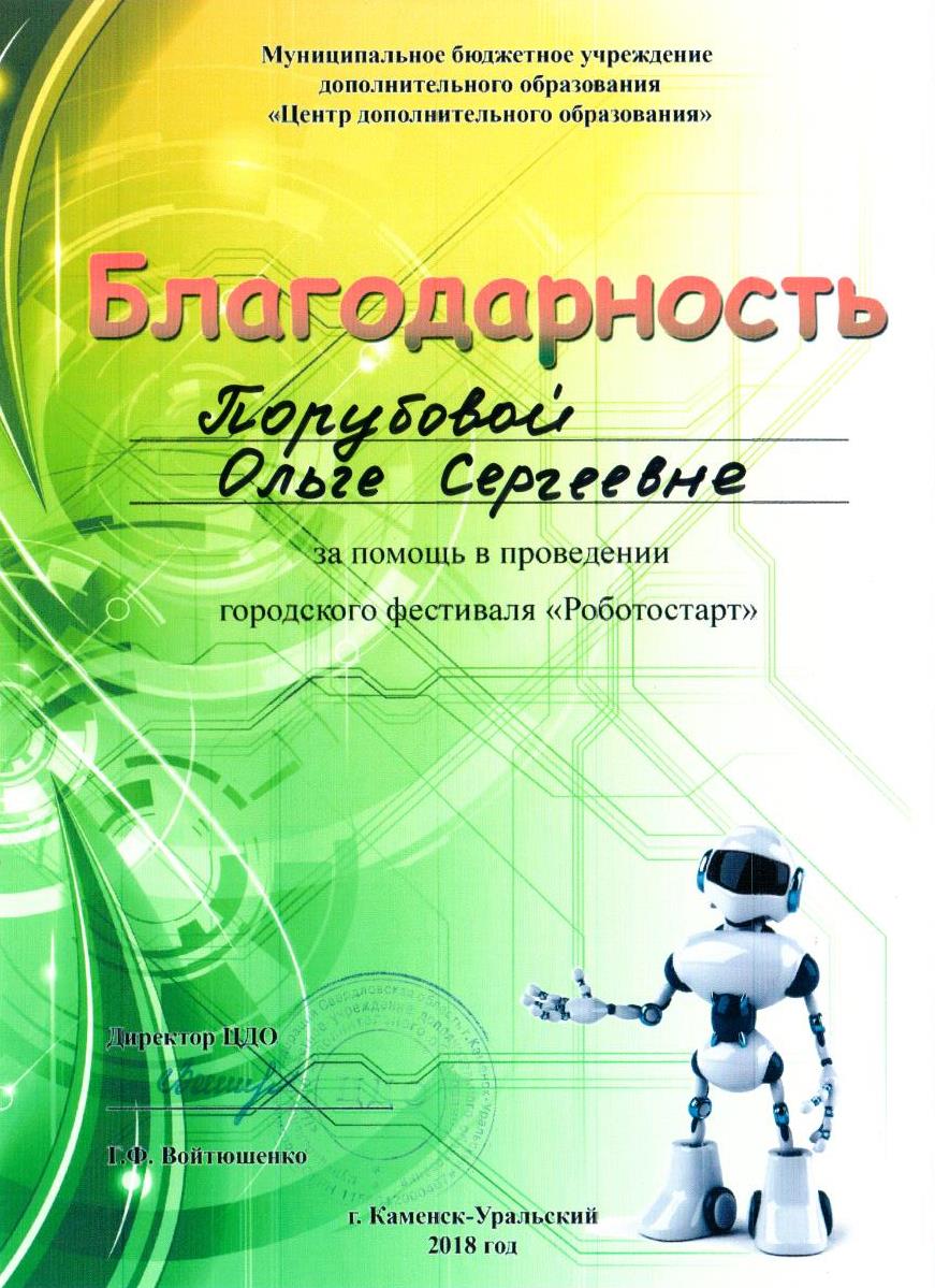 Благодарность Порубова городской фестиваль Робостарт