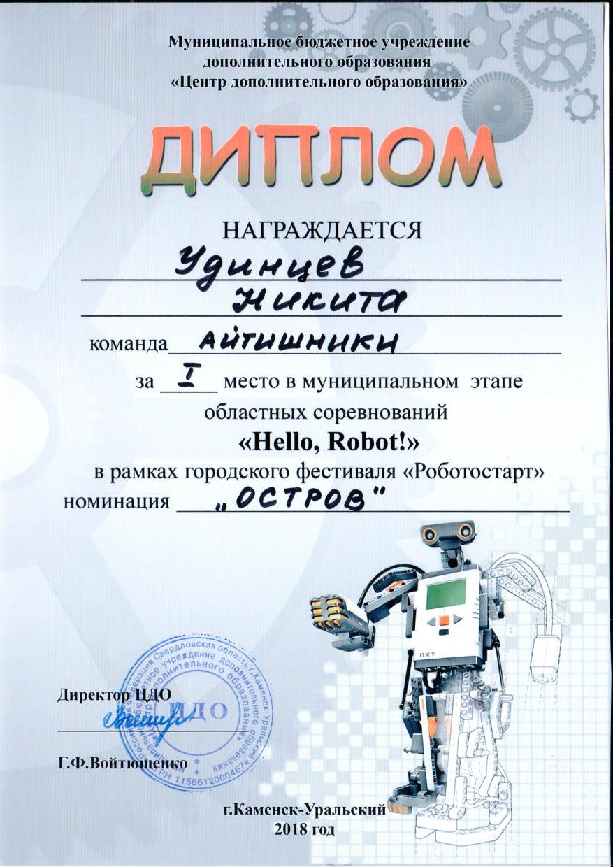Диплом Удинцев областные соревнования Hellp Robot