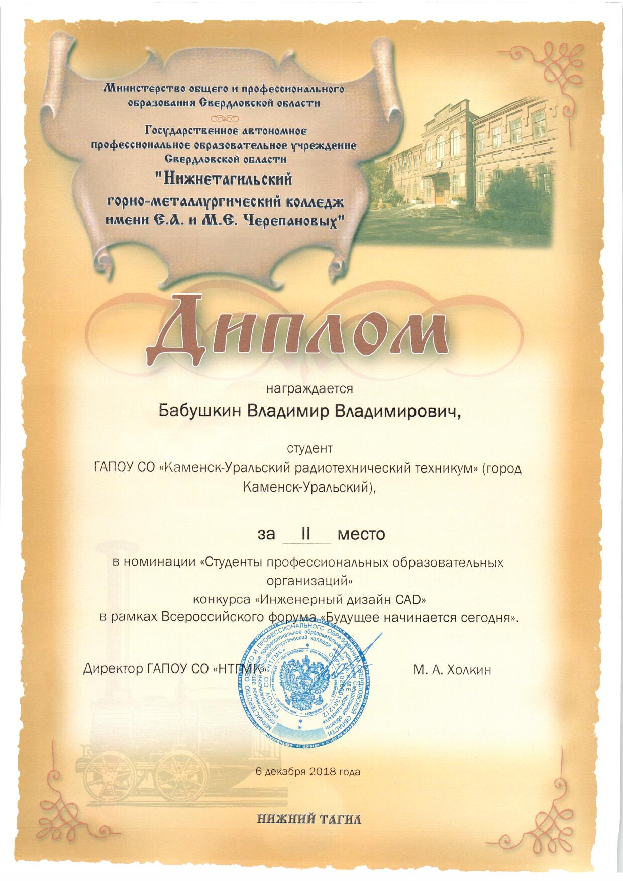Диплом 1 место Бабушкин "Будущее начинается сегодня"