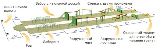 Единая полоса препятствий включает в себя следующие элементы: