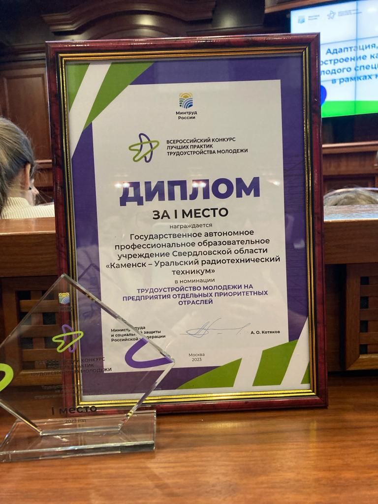 В числе победителей — ГАПОУ СО «Каменск-Уральский радиотехнический техникум», занявший 1 место в номинации «Трудоустройство молодежи на предприятия отдельных приоритетных отраслей».